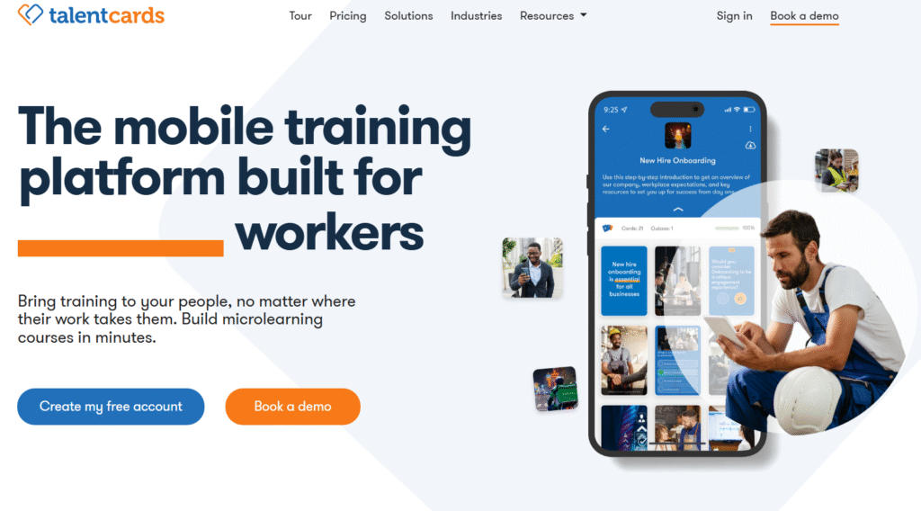 TalentCards is built for companies with on-the-go employees who don’t sit behind desks. The platform delivers bite-sized training through digital flashcards that learners can access on their phones. It’s one of the best microlearning platforms for industries like retail, logistics, and manufacturing where traditional eLearning doesn’t fit easily into workflows.