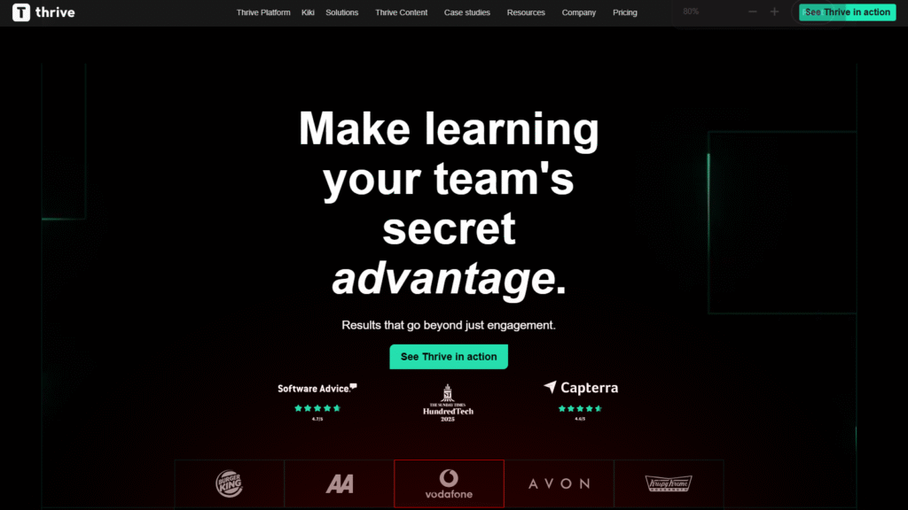 | 11. Thrive | Modern LXP | From £2/user | ✅ | Social learning feed | 4.6/5 |
