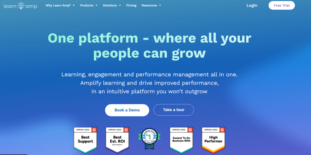 | 3. LearnAmp | Enterprise learning | Custom pricing | ❌ | All-in-one learning hub | 4.5/5 |