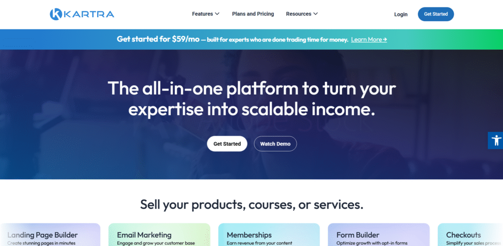 Kartra is an online teaching platform and all-in-one marketing suite designed for creators who want to sell courses, memberships, and coaching programmes while automating their marketing. It’s a powerful option for entrepreneurs who need more than just course hosting. It provides everything from email campaigns to checkout pages in one ecosystem. This Kartra review breaks down how it stands out among digital course builders for those focused on sales performance and automation.