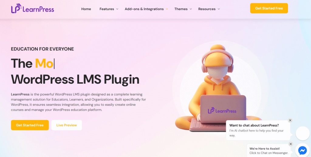 Combine LearnPress with WooCommerce and an email automation plugin such as MailPoet. This creates a full sales funnel that captures leads, sells courses, and delivers lessons—all within WordPress.