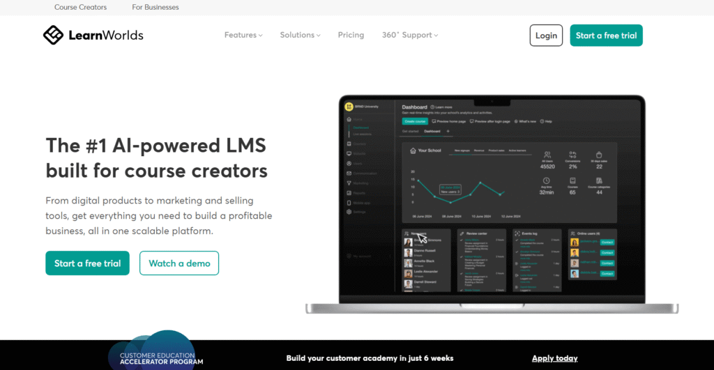 LearnWorlds is a powerful LMS software designed for instructors and institutions that prioritise learner interaction and engagement. It combines strong course-building tools with advanced video editing, assessments, and gamification features, making it one of the most versatile eLearning tools on the market. This LearnWorlds review explains why it’s a preferred choice for professional educators and academies seeking to deliver immersive digital learning experiences.