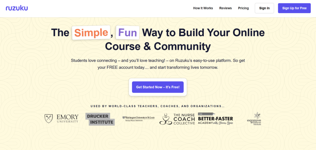Ruzuku | Simple course creation | £69/mo | Yes | Guided course builder | 4.3 | Easy | No |