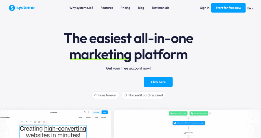 Systeme.io | Budget-friendly creators | £0 | Yes | Funnel + course system | 4.5 | Easy | No |