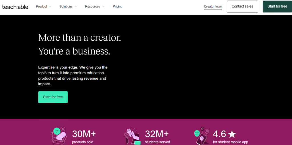 Teachable is ideal for instructors and small course creators who want to start quickly and focus on marketing and sales rather than technical setup.