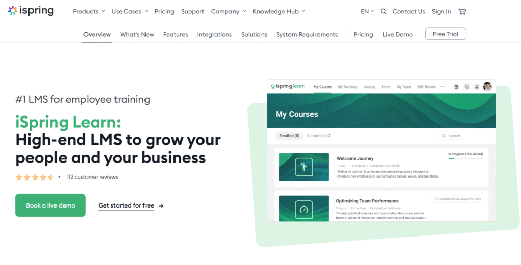 iSpring Learn | Interactive courses | £2.29/user/mo | Yes | PowerPoint integration | 4.6 | Moderate | No |